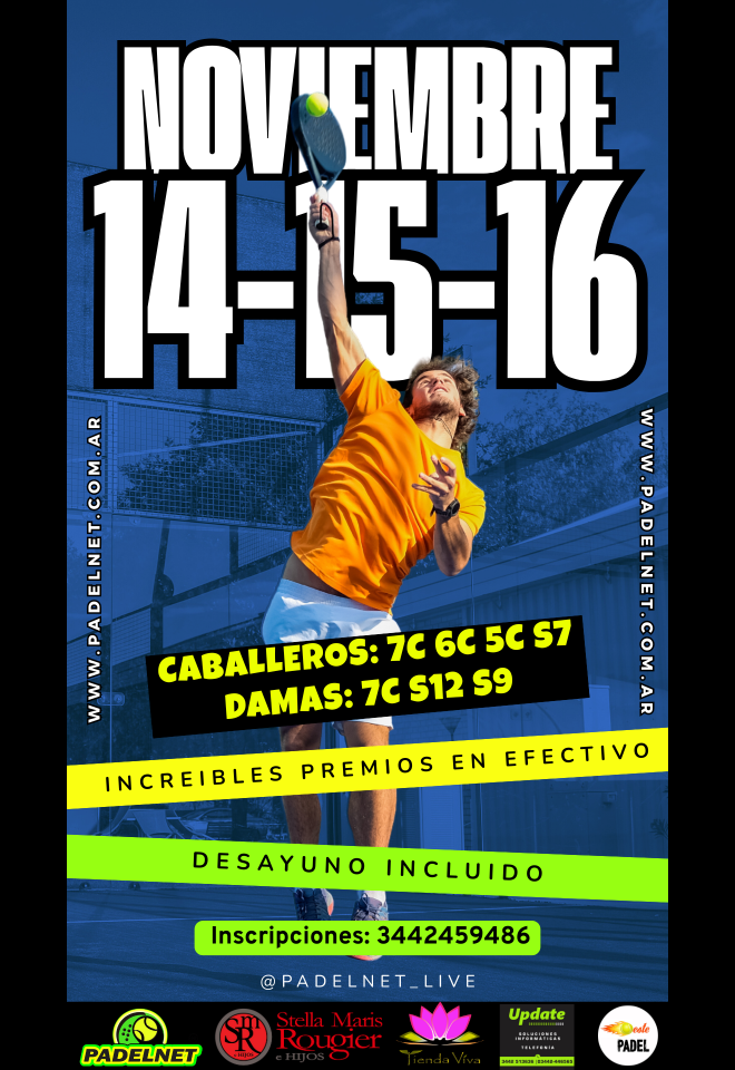 »» Evento: GARN TORNEO PADELNET - Copa ??? »» Localidad: C. del Uruguay »» Fechas: 14/11/2025 al 16/11/2025
