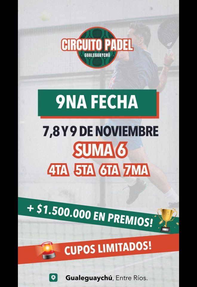 »» Evento: Circuito de Padel Gualeguaychu 2025 - Fecha 9 »» Localidad: Gualeguaychú »» Fechas: 06/11/2025 al 09/11/2025