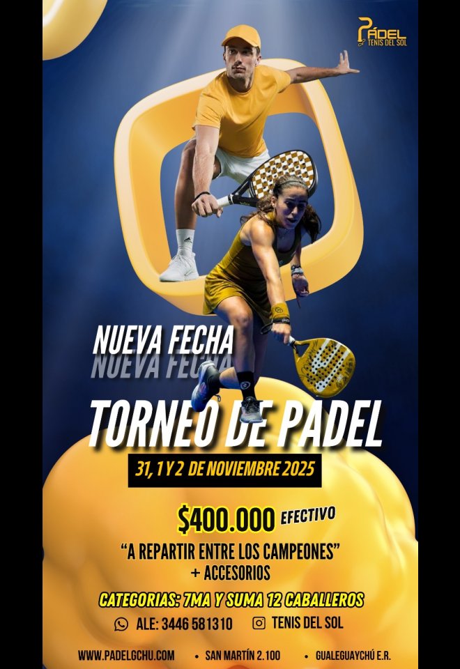 »» Evento: Torneo Tenis del Sol »» Localidad: Gualeguaychú »» Fechas: 31/10/2025 al 02/11/2025