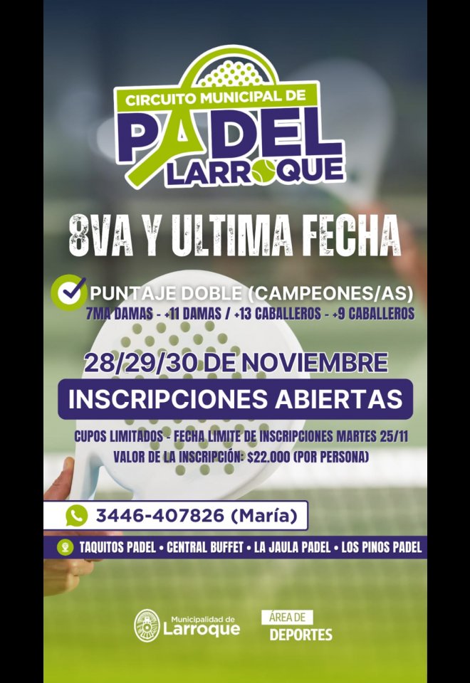 »» Evento: Larroque Fecha 8 - Circuito Municipal 2025 »» Localidad: Larroque »» Fechas: 28/11/2025 al 30/11/2025