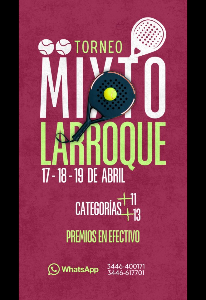 »» Evento: Torneo Mixto Larroque »» Localidad: Larroque »» Fechas: 17/04/2026 al 19/04/2026