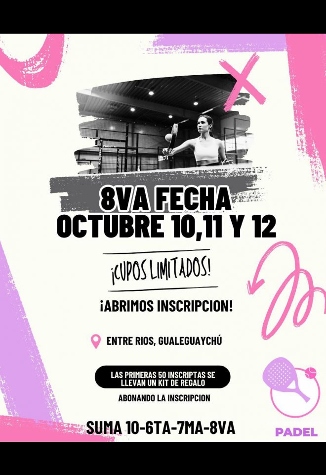 »» Evento: CIRCUITO FEMENINO 2025 Fecha 8 »» Localidad: Gualeguaychú »» Fechas: 10/10/2025 al 12/10/2025
