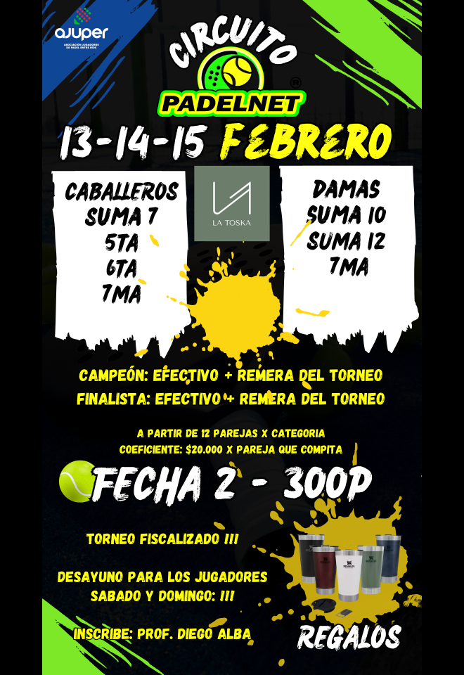 »» Evento: Circuito Padelnet Fecha 2 - 300p »» Localidad: C. del Uruguay »» Fechas: 13/02/2026 al 15/02/2026